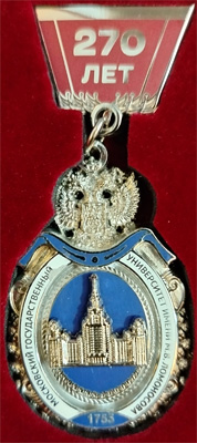 Jubilee badge for the 270th anniversary of Moscow State University (M.V. Lomonosov Moscow State University)